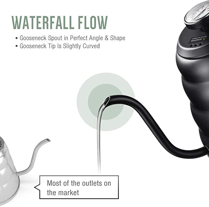 غلاية مع عداد قياس للتحكم في درجة الحرارة المياه ورأس منحنية للتحكم في الصب