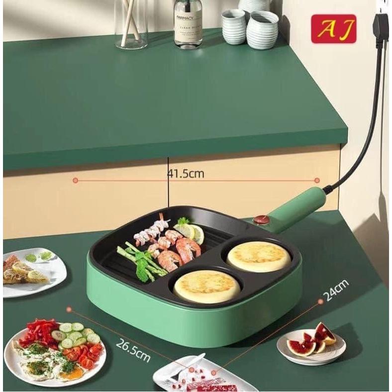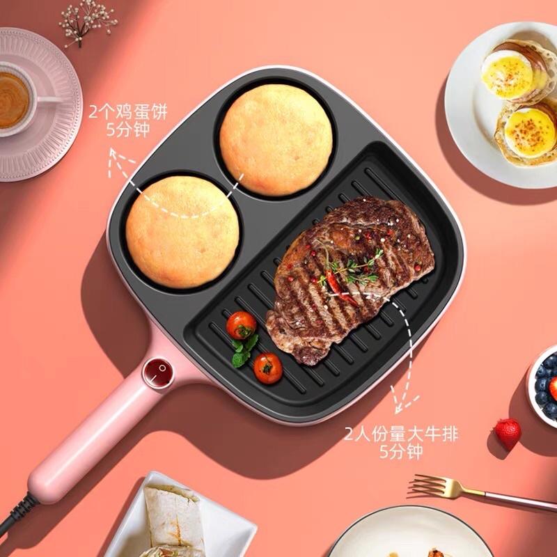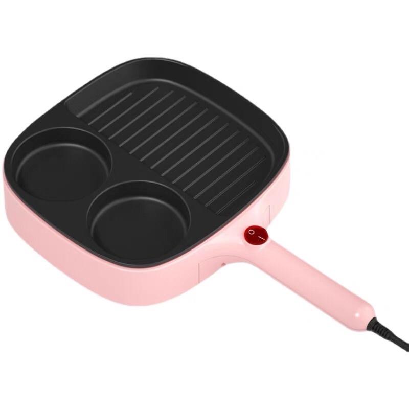 جريل كهربائي غير لاصق للأكل 3 أقسام لقلي البيض وعمل البان كيك وتسوية شرائح اللحم