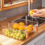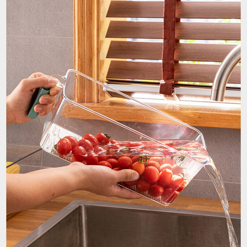 درج ثلاجة منظم وحامل للفواكه والخضروات بيد وغطاء محكم الغلق من الاكليريك الشفاف