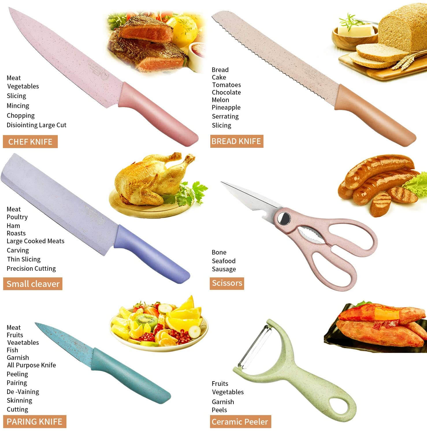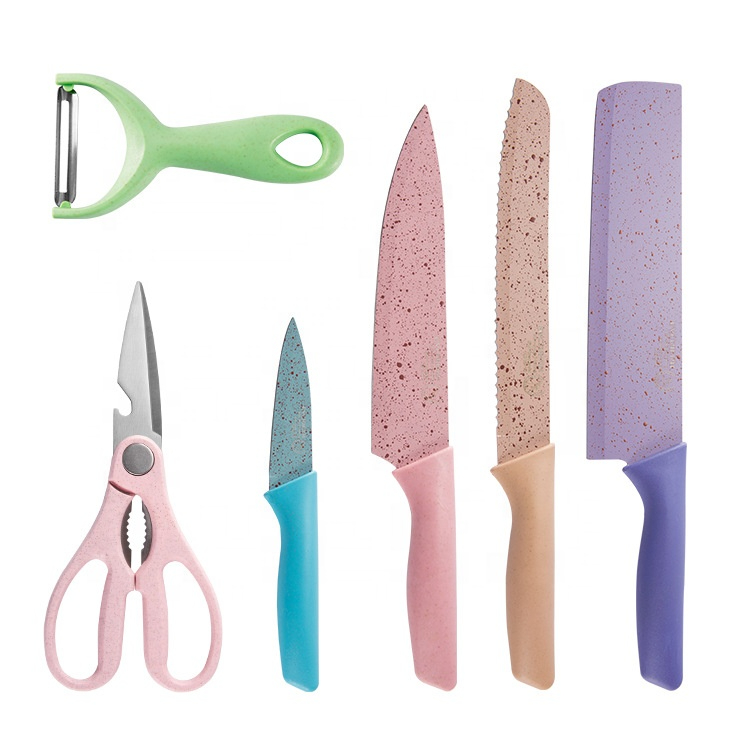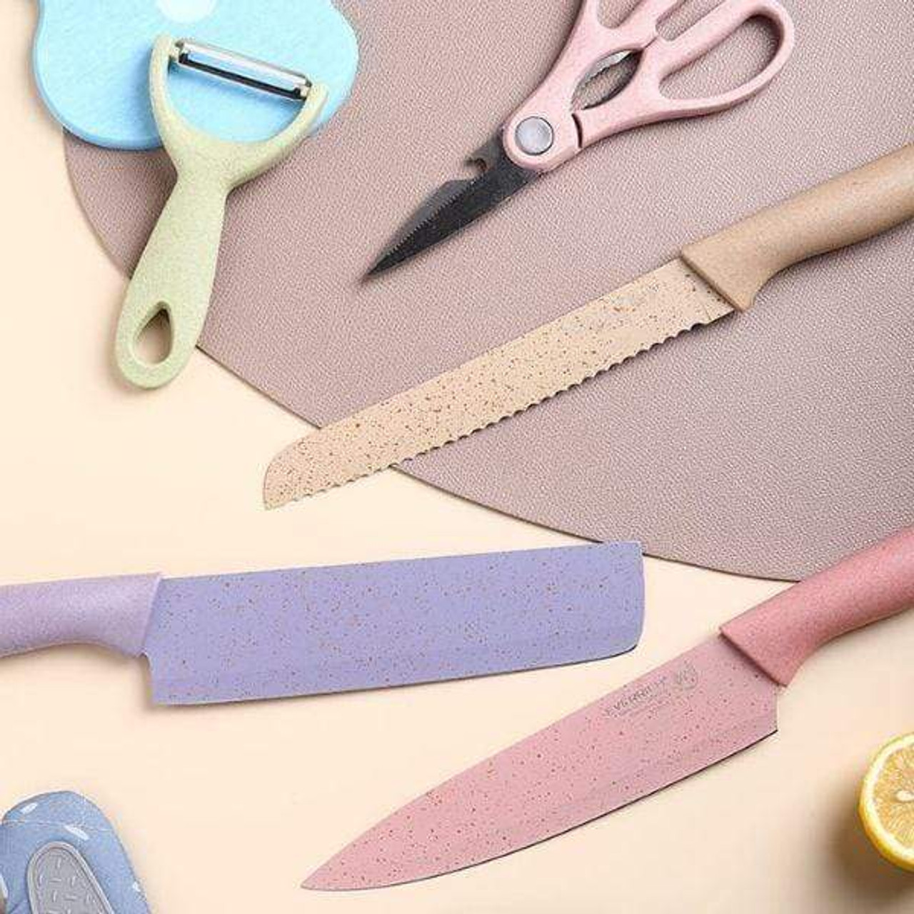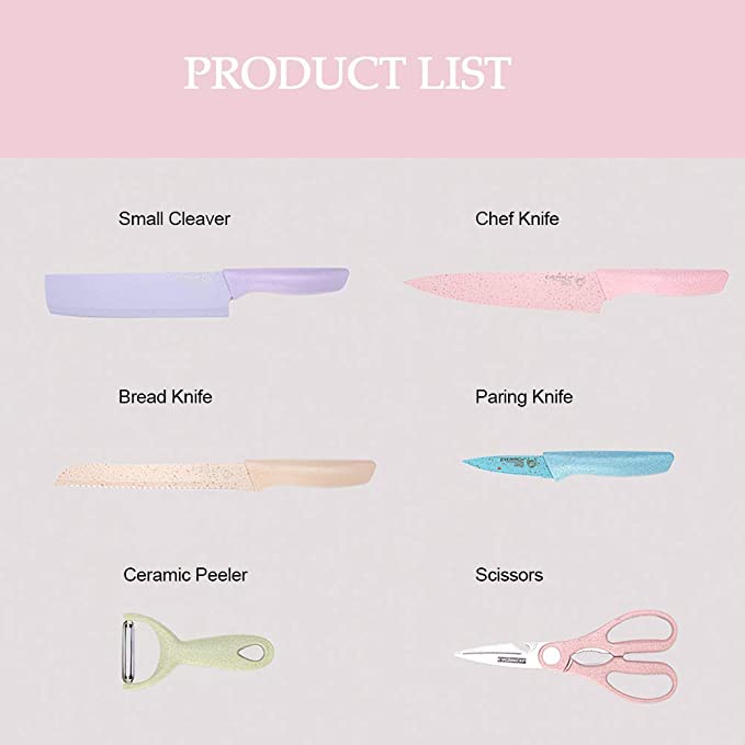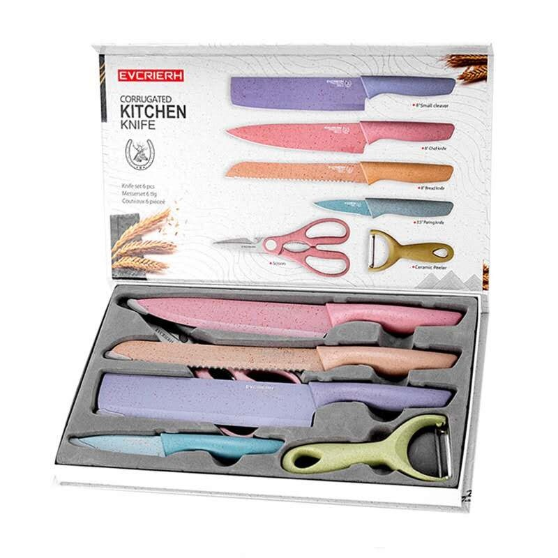 طقم 6 قطع مكون من 4 سكاكين مختلفة الحجم والمقاس مع مقص مبشرة