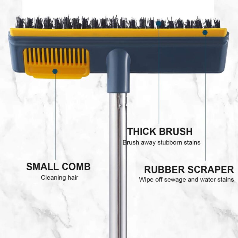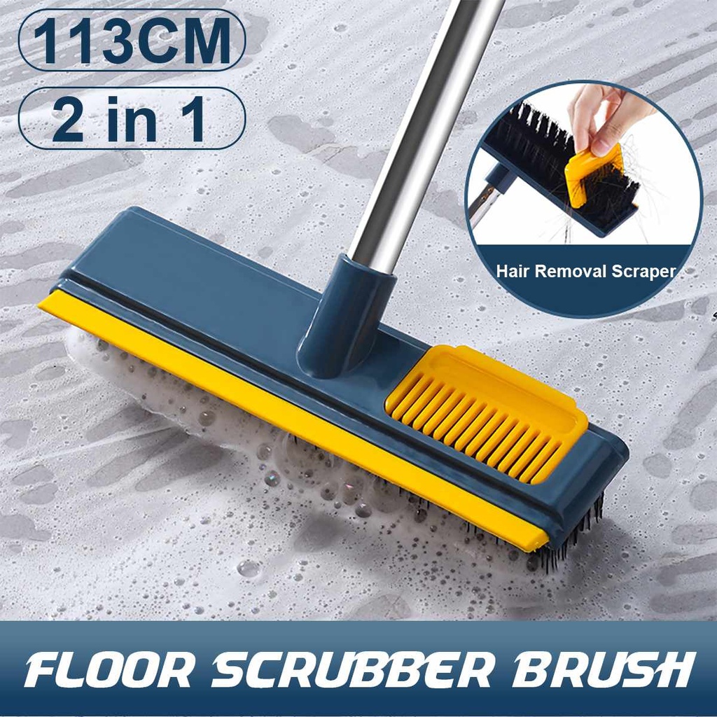 مقشة تنظيف ودعك بيد طويلة للأرضيات والسجاد مع حرف مساحة لشد المياه متعددة الأستخدام