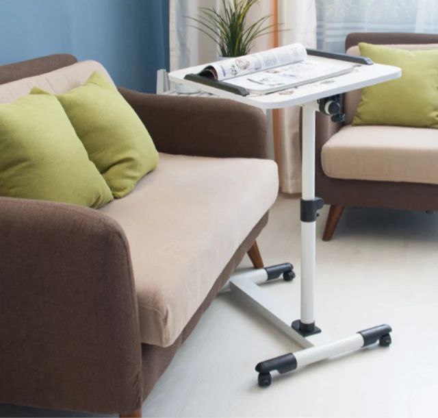 ترابيزة لاب توب مع التحكم في الإرتفاع والميل بعجلات للعمل من المنزل بكل راحة