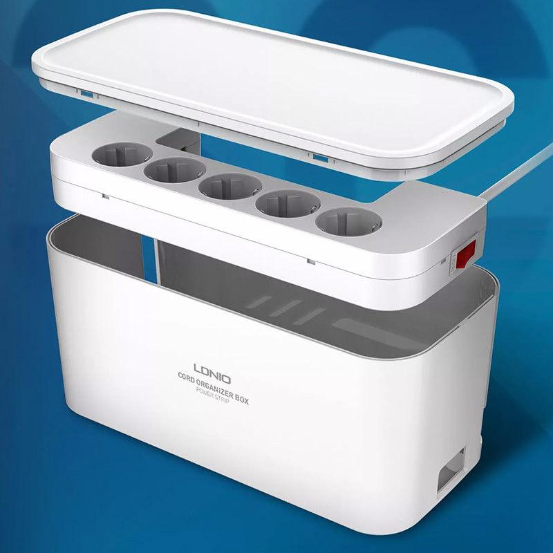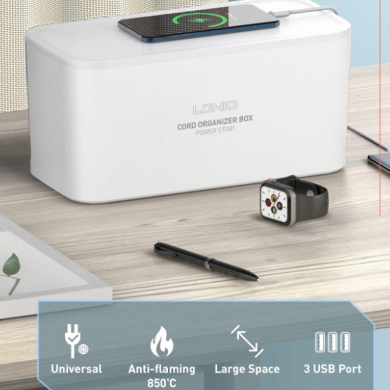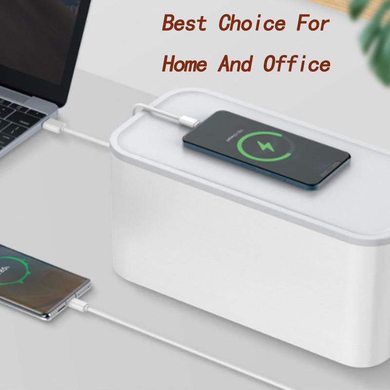 مشترك كهربائي و شاحن ببوكس منظم للاسلاك وستاند للهواتف و الأجهزه بفتحات للتهوية ويمكن استخدام المشترك بدون البوكس