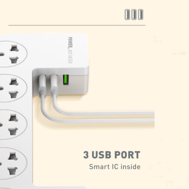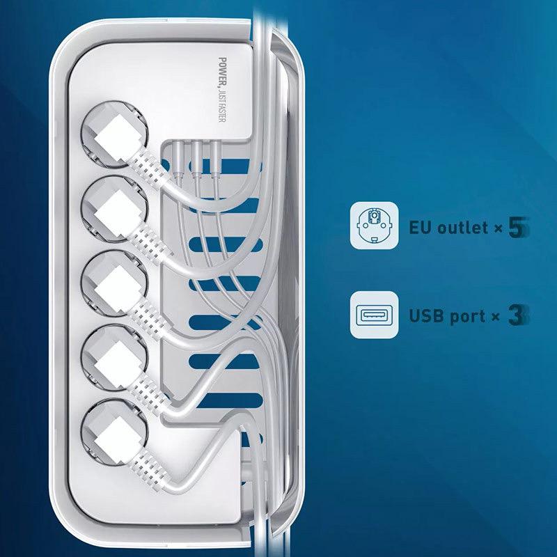 يتكون من 8 منافذ 5 فيش و 3 منافذ يو اس بي ليناسب جميع الاجهزة والهواتف