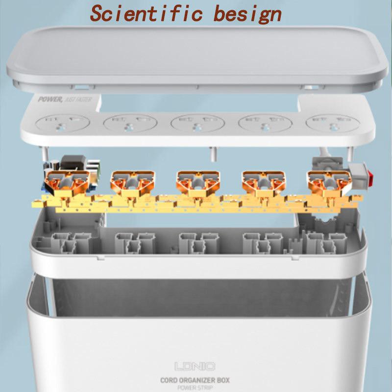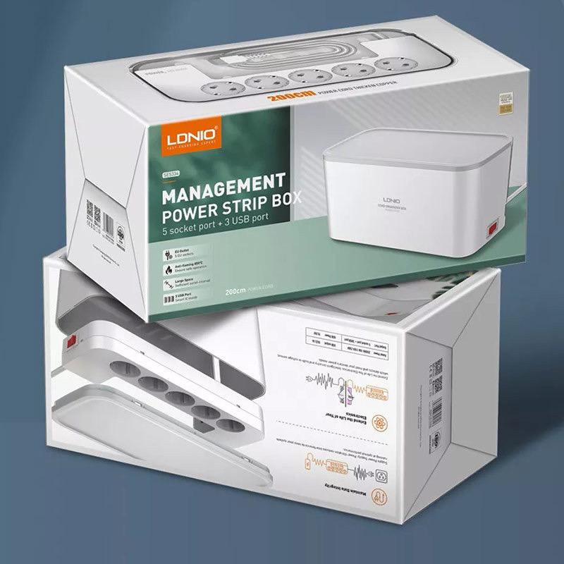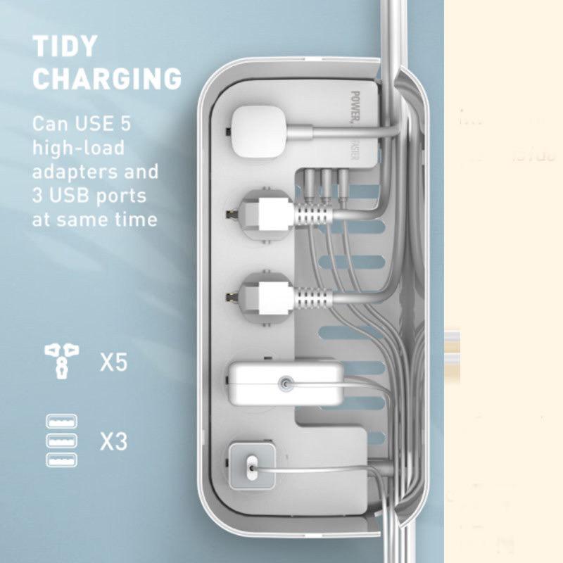 Power Socket with 5 Outlets & 3 USB Outlets Inside a Box to Hide & Organize Cords & Wires